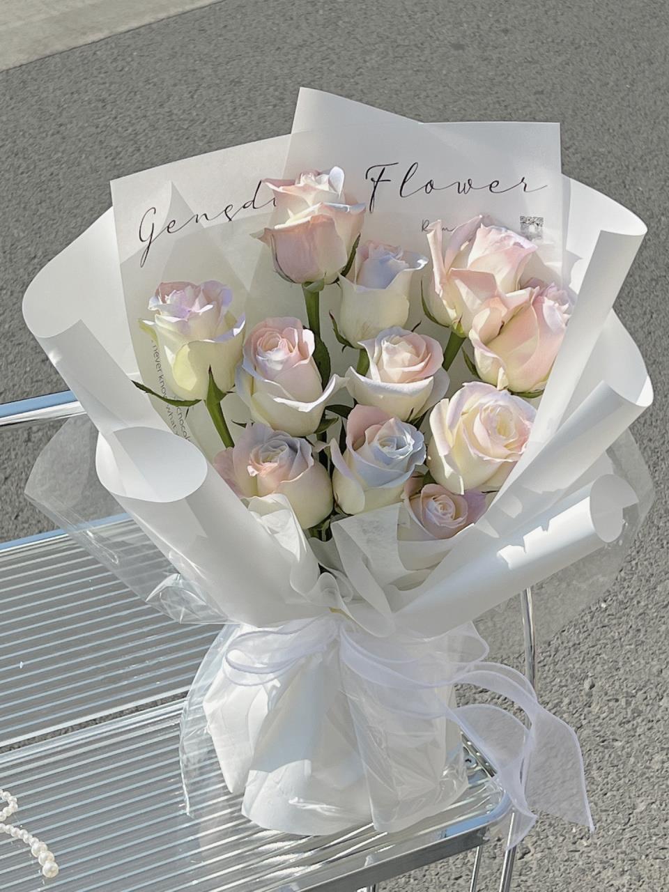 梦幻人鱼姬玫瑰花以其独特的粉紫色珠光渐变而闻名,花瓣梦幻绮丽,珠光感十足,波光粼粼,仿佛美人鱼的眼泪洒落在白玫瑰上,化作了这梦幻般的花朵。它的花语是“绮丽梦境”,寓意着美梦和多彩的梦,象征着至死不渝的爱,爱到生命的尽头无悔。