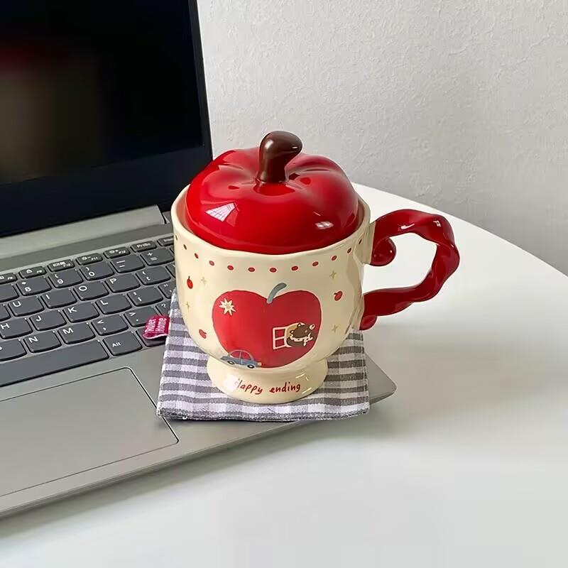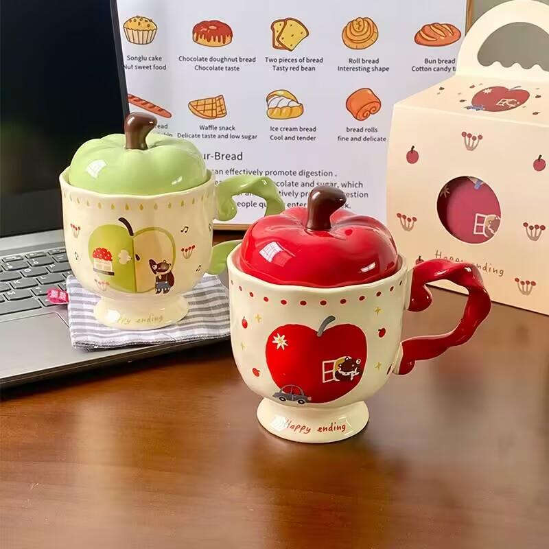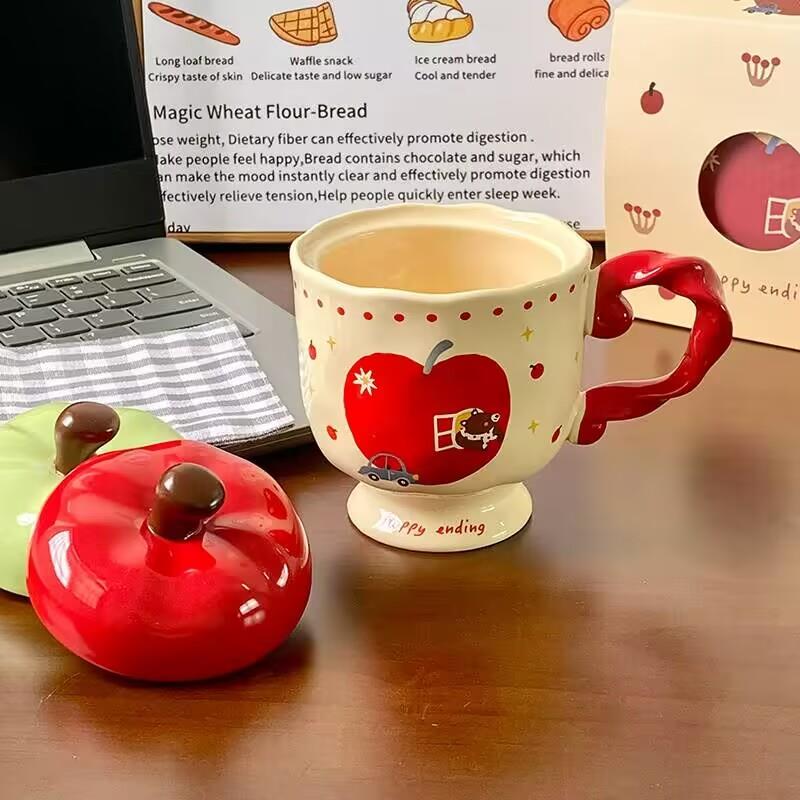 红色苹果陶瓷马克杯女高颜值生日礼物早餐情侣漂亮水杯高级感一对
