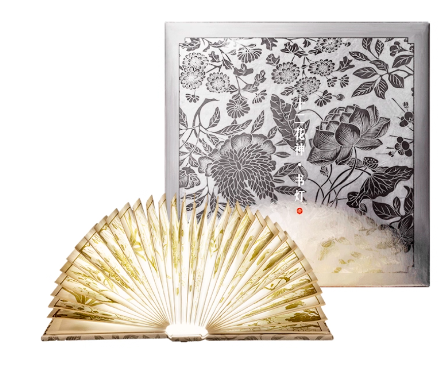 联名博物馆复刻古画中“十二花神”意象,一月水仙、二月迎春、三月桃花……每一页灯片都印着对应花神的工笔插画,笔触细腻灵动,开灯后光影透过画纸,花影斑驳如在眼前。既是照明工具,也是可翻阅的“微型画册”,放在书架是文创摆件,拿在手里是拍照道具,朋友圈晒图自带文化滤镜,轻松成为宿舍潮流焦点。