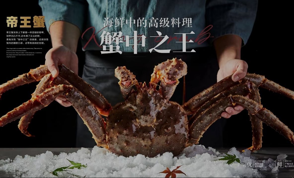 强调帝王蟹的高端品质与尊贵地位,适合高端餐饮或礼品市场