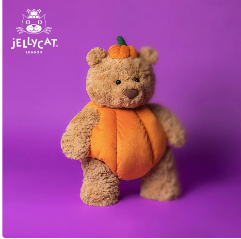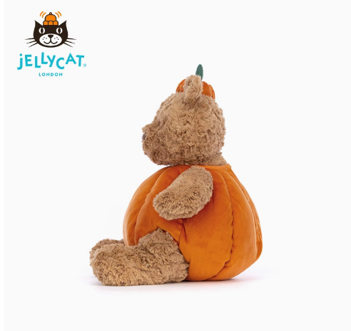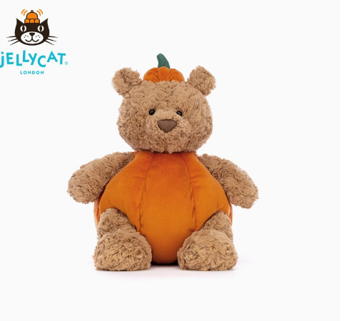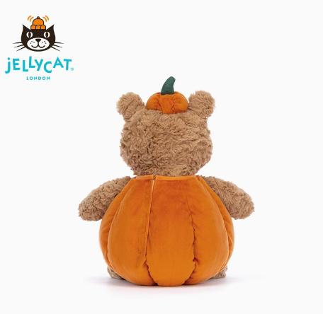 英国Jellycat万圣节新品巴塞罗熊南瓜装毛绒玩具是一款极具特色和趣味性的玩偶,以下是关于它的商品介绍: 1. **品牌背景**: - Jellycat是来自英国伦敦的知名毛绒玩具品牌,自1999年创立以来,以其独特创新的设计、卓越的品质和对细节的极致追求,深受消费者喜爱。其产品常因自然的动物形象以及柔软毛绒的设计,成为毛绒玩具领域的佼佼者。 2. **外观设计**: - **整体造型**:以巴塞罗熊为基础形象,保留了巴塞罗熊本身的可爱体态和憨态可掬的模样。在此基础上,给熊穿上了一套特别的南瓜装,南瓜装的设计十分逼真,颜色鲜艳明亮,与万圣节的氛围相得益彰。 - **服装细节**:南瓜装的材质柔软,手感舒适,上面有着精美的纹理,仿佛是一个真正的小南瓜。南瓜帽子上还带有绿色的茎,为整个造型增添了一份俏皮和生动。 3. **材质与手感**: - **面料**:采用超柔软的毛绒面料,触摸起来极其顺滑,就像在抚摸云朵一般,给人带来温暖和舒适的感觉。 - **填充**:内部填充高质量的聚酯纤维和塑料颗粒,不仅使玩偶具有良好的弹性和支撑性,能够保持饱满的形状,而且重量适中,抱在怀里十分安心。 4. **尺寸规格**:通常这款毛绒玩具的高度约为36厘米,大小适中,既适合放在床头、书架等地方作为装饰,也方便携带和拥抱。 5. **适用人群与场景**: - **适用人群**:无论是孩子还是成年人,都能被这款可爱的毛绒玩具所吸引。对于孩子来说,它是一个可爱的玩伴,可以陪伴他们度过欢乐的时光;对于成年人而言,它则是一款极具收藏价值和治愈性的玩偶,能够在忙碌的生活中带来温暖和慰藉。 - **适用场景**:非常适合作为万圣节的礼物,无论是送给朋友、家人还是自己,都能增添节日的氛围。同时,它也可以作为家居装饰品,为房间营造出温馨、有趣的氛围。 6. **安全性能**:Jellycat一直注重产品的安全性,该款玩具使用的材料均符合安全标准,对人体无害,可以放心使用。 7. **清洁与保养**:建议采用手洗的方式进行清洁,避免使用洗衣机洗涤或烘干,以免损坏玩具的材质和造型。洗涤后要自然晾干,保持玩具的柔软和蓬松。