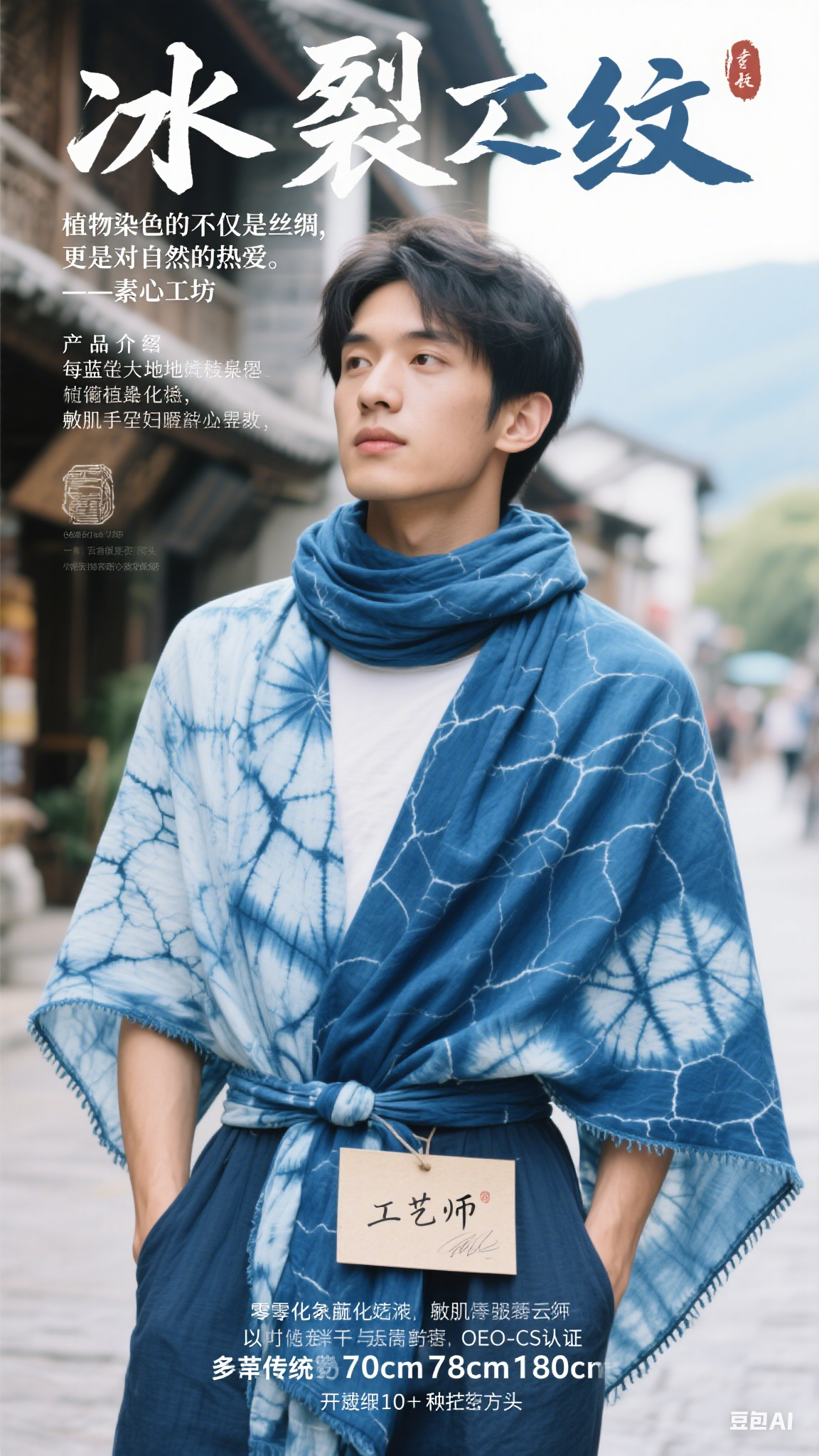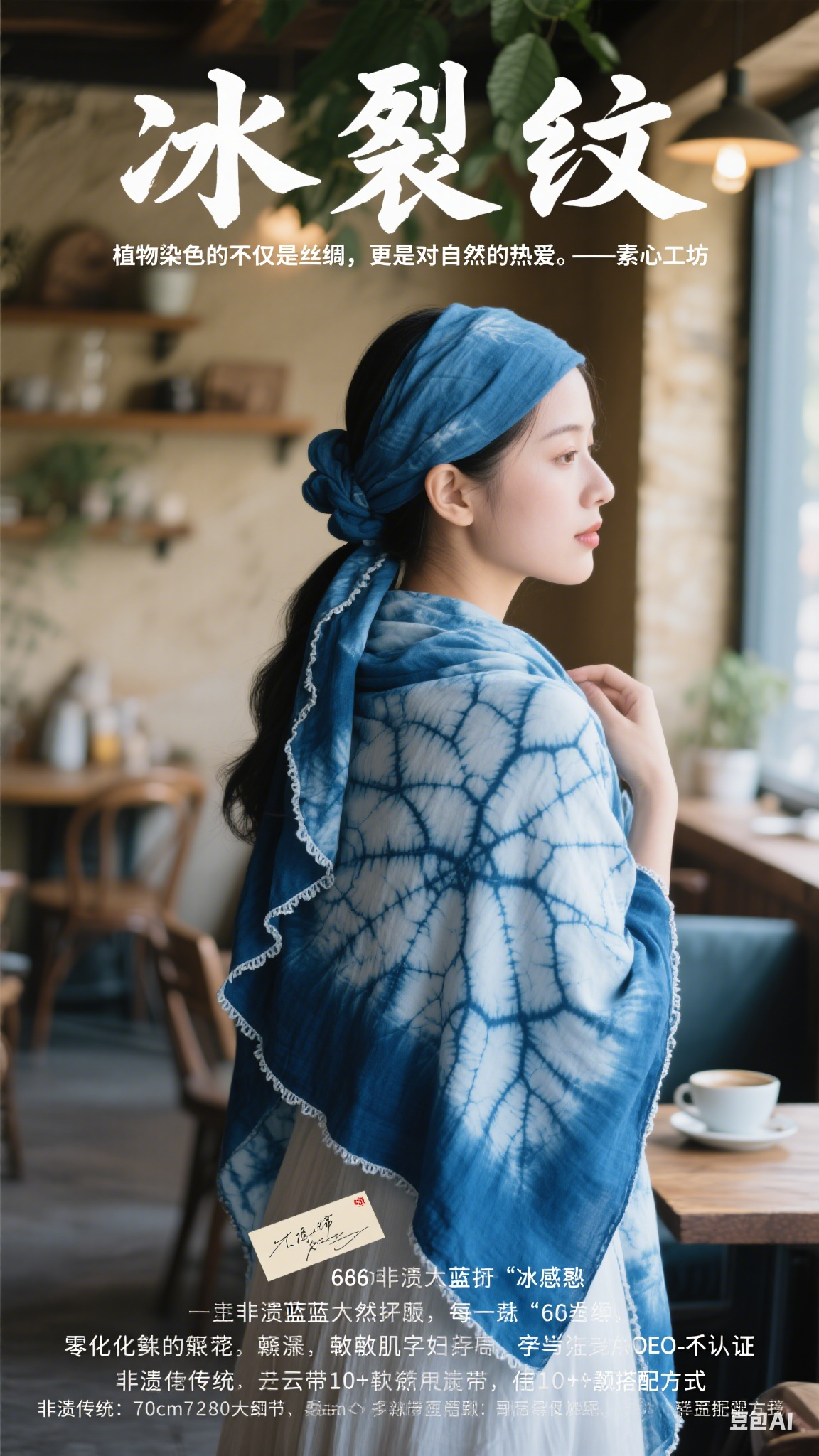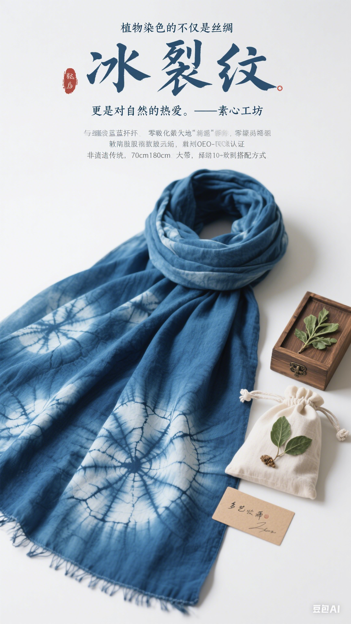 非遗传承:与云南扎染匠人合作,每件围巾附带手写工艺师签名卡。