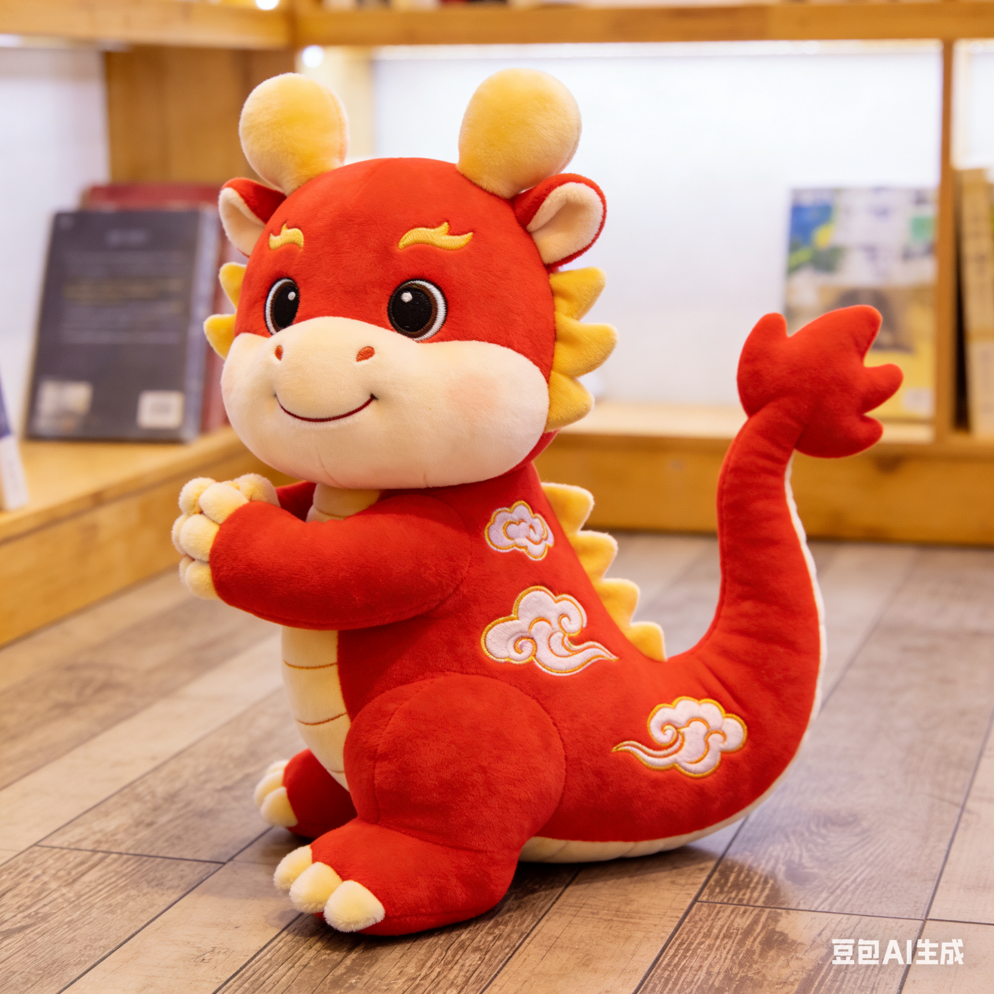专为儿童设计的30厘米掌心神龙,将威严祥龙化为圆眼短爪的Q版造型,保留龙角、鳞片、祥云纹等经典元素,以柔软方式传递生肖文化,让守护神成为孩子触手可及的玩伴。