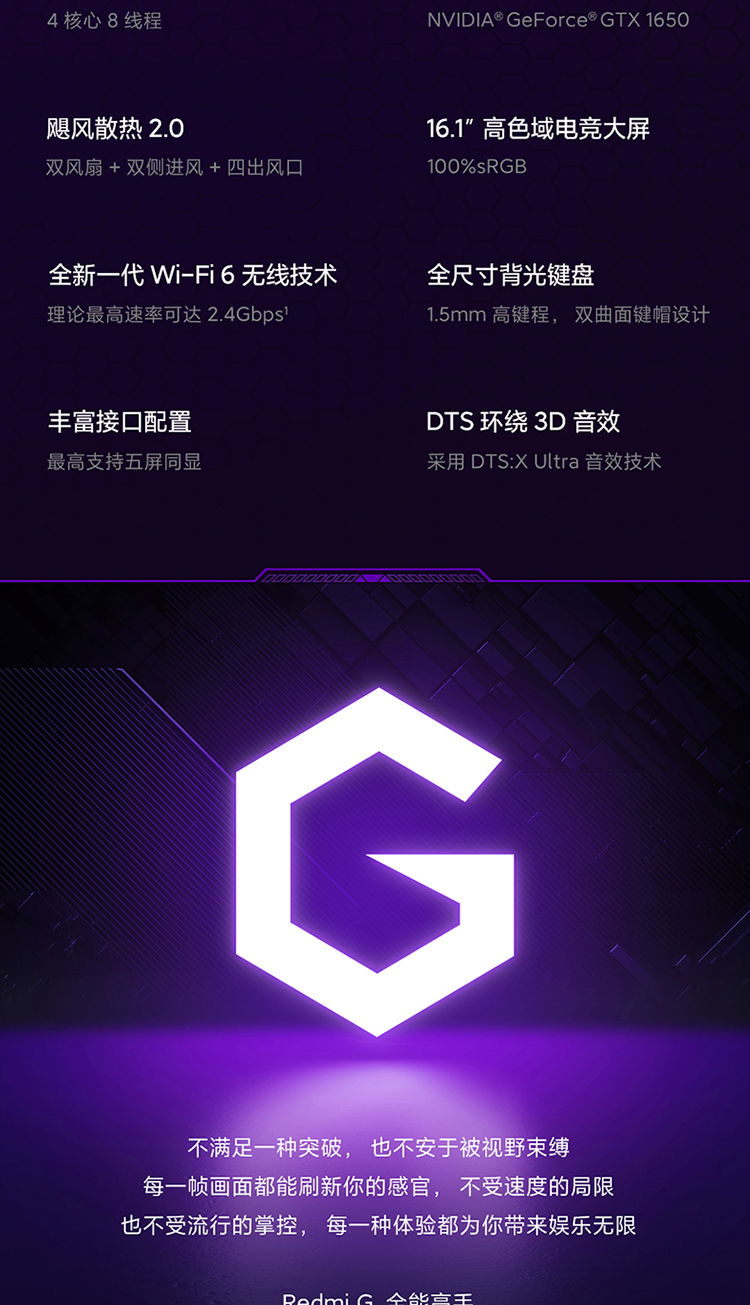 小米游戏本Redmi G 16.1英寸电竞大屏2020款红米RedmiBook超轻薄吃鸡lol电竞游戏CF学生手提笔记本电脑
