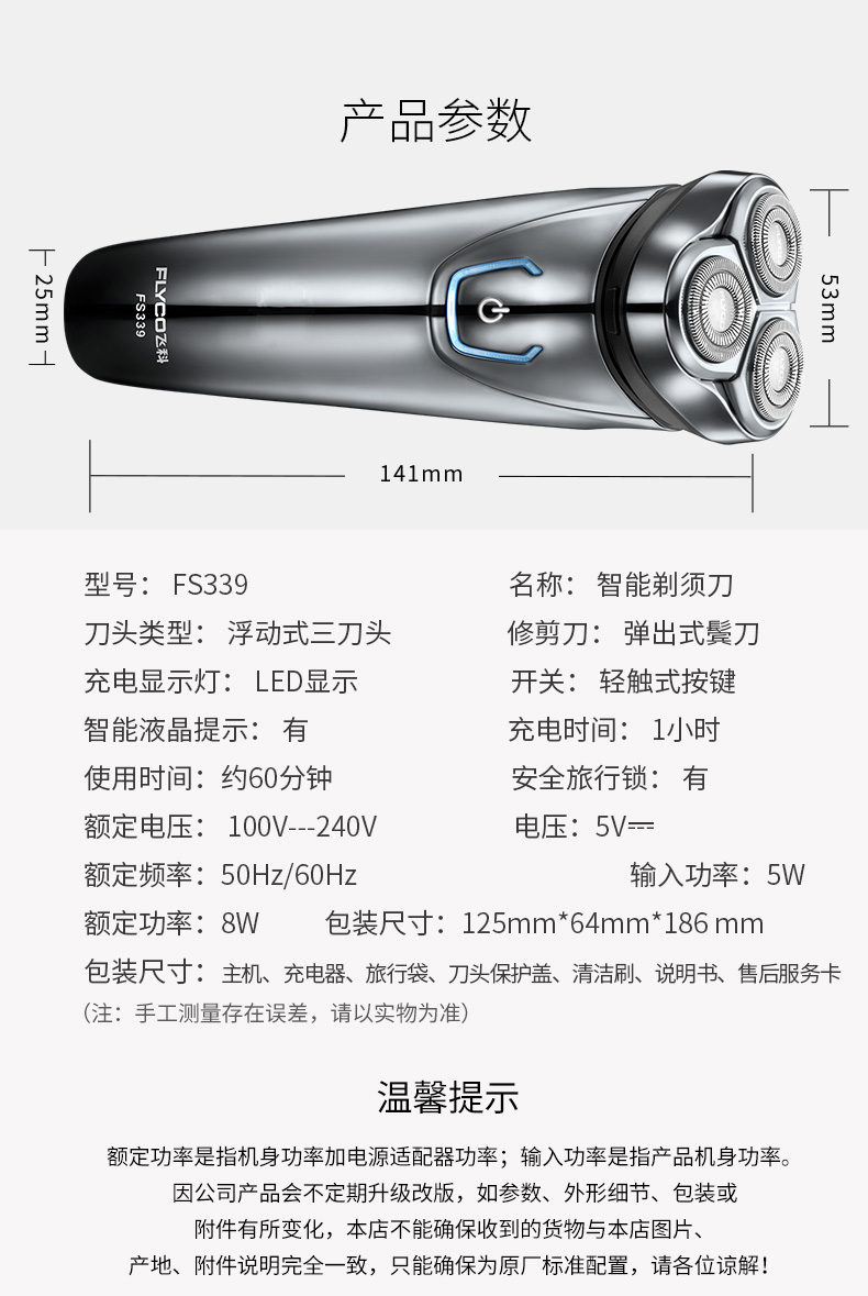飞科剃须刀全身水洗飞科电动剃须刀男士刮胡刀充电式胡须刀FS339