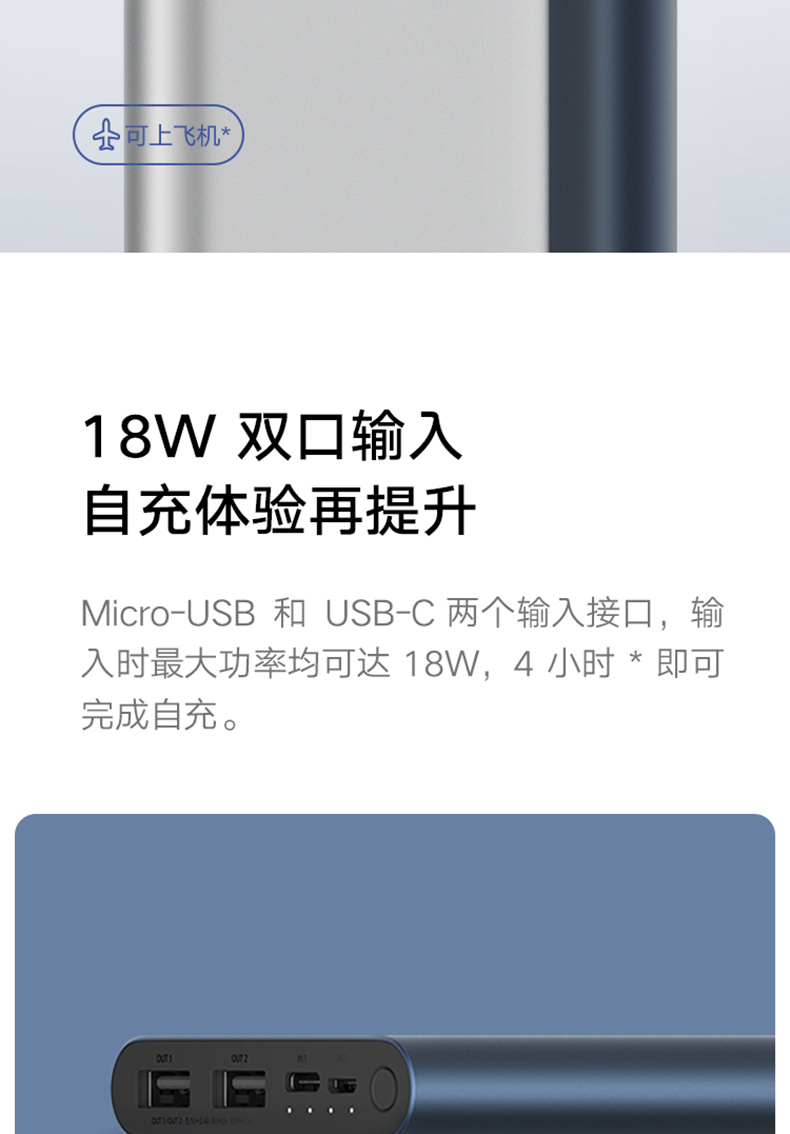 电脑办公、手机数码 > 多功能一体机 > 充电宝移动电源10000毫安快充超薄大容量18w支持苹果12/13 双USB接口输出 双向快充