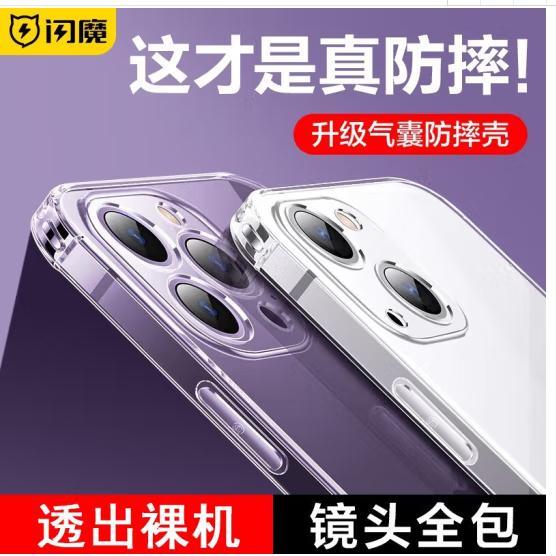 商品名称:闪魔 苹果14手机壳 iphone14ProMax气囊防摔超薄保护套镜头全包透明软壳 苹果14Pro【气囊防摔^透出裸机】全透明