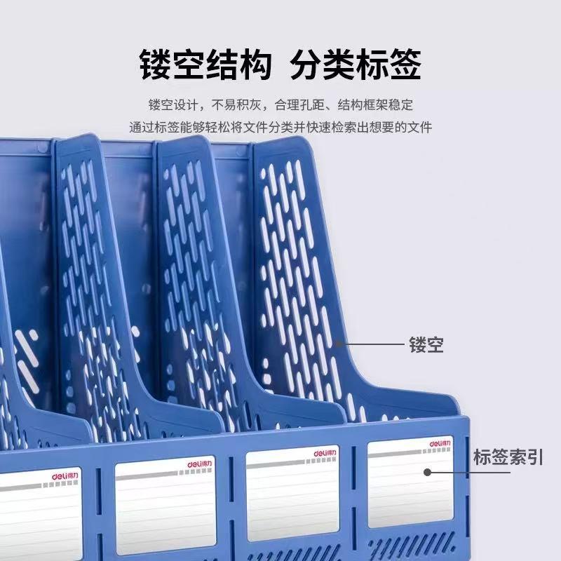 得力得力文件框四联加厚资料架四档档案文件架黑灰蓝色书立文件栏塑料置物架整理筐子灰色学生栏黑收纳盒