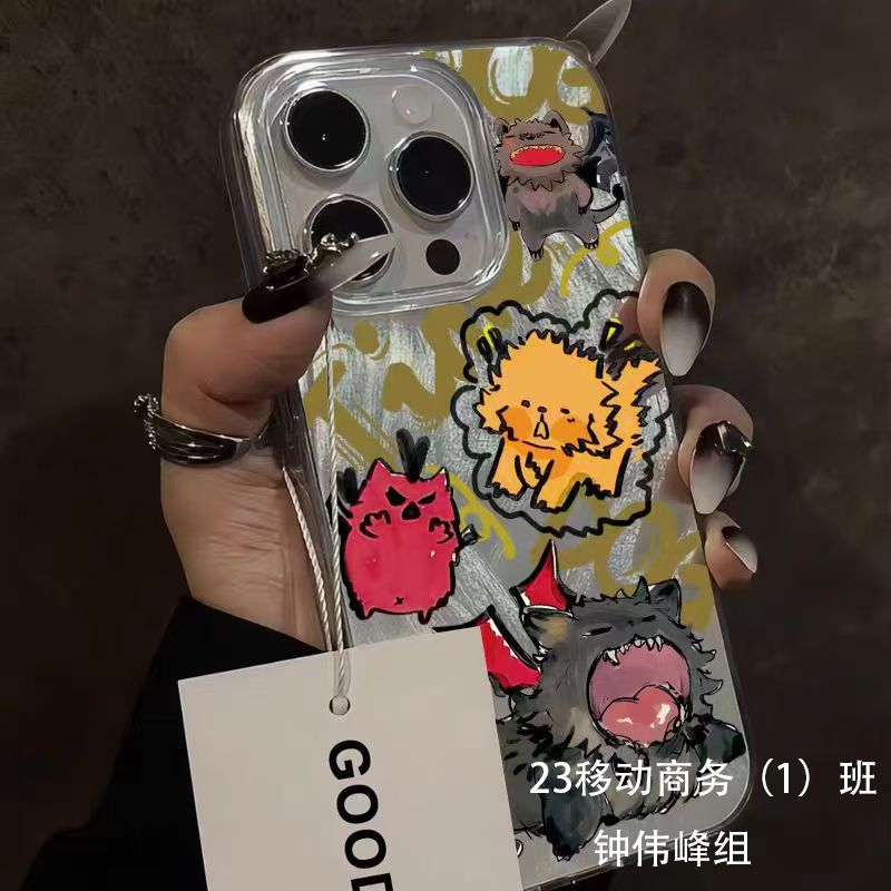 - 设计元素:以卡通涂鸦风格的“愤怒/搞怪小狗+小恶魔形象”为主视觉,搭配金属质感的电镀边框,兼具个性与潮流感。
