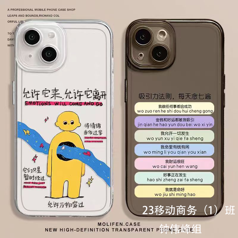 - 设计特点:文字与插画结合,将心理疗愈/正向暗示内容融入日常配件,兼具装饰性与情绪价值。