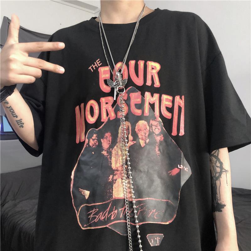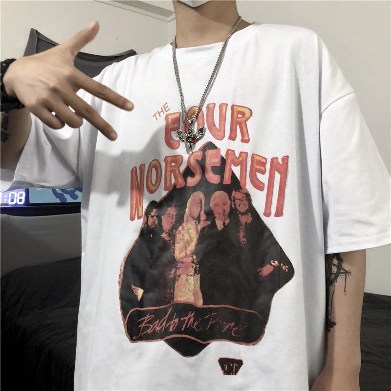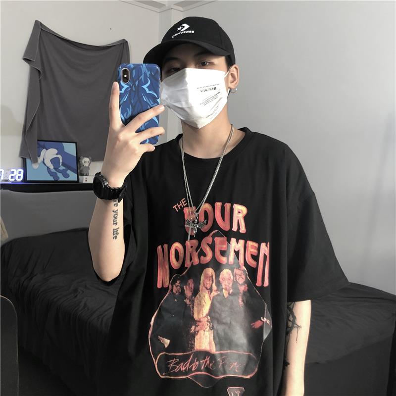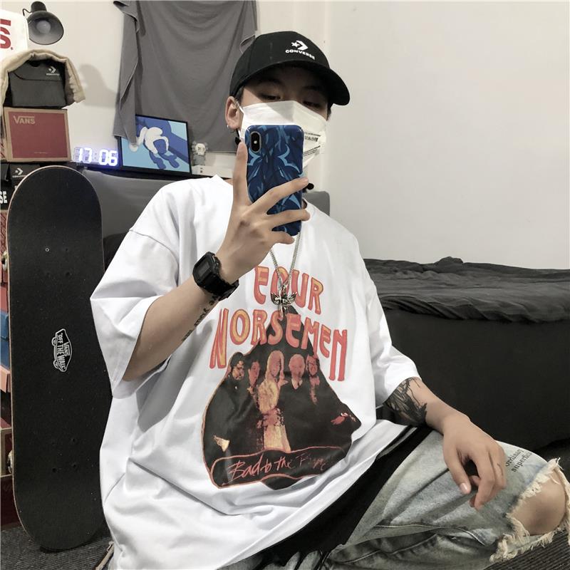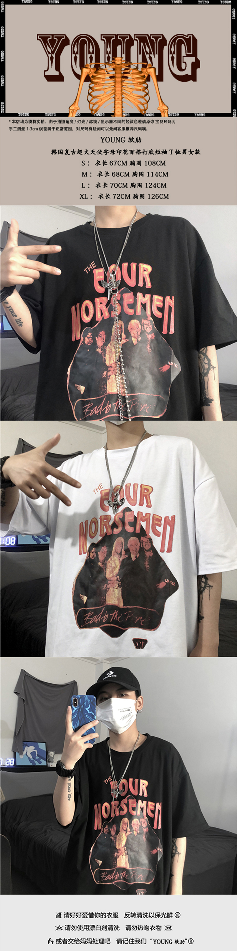 服饰箱包、运动户外 > 上装 > YOUNG软肋韩国ins复古做旧模糊人像字母印花短袖T恤 男女潮