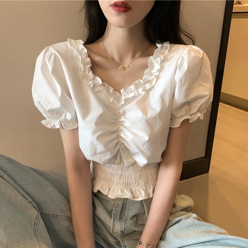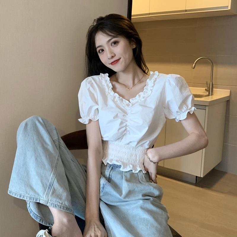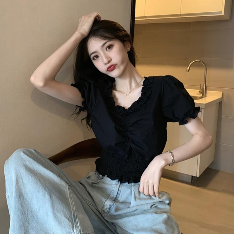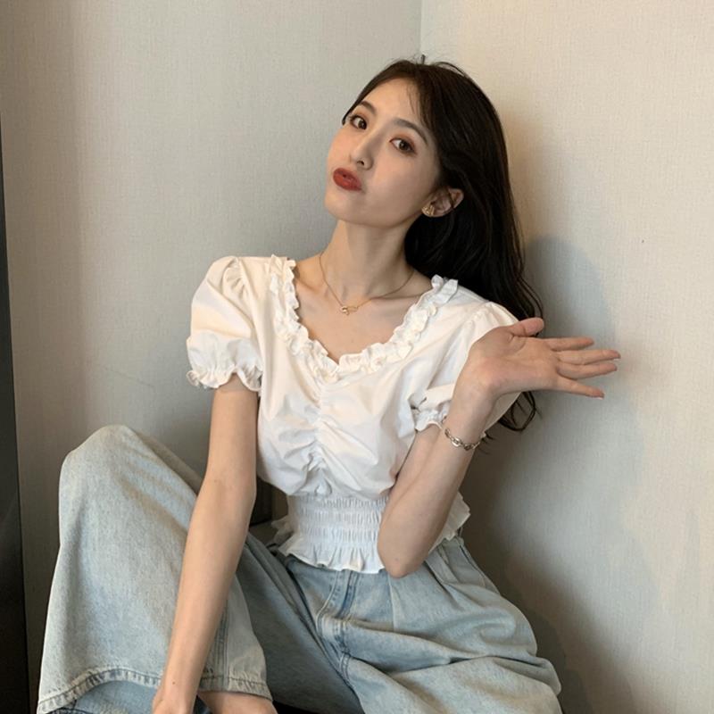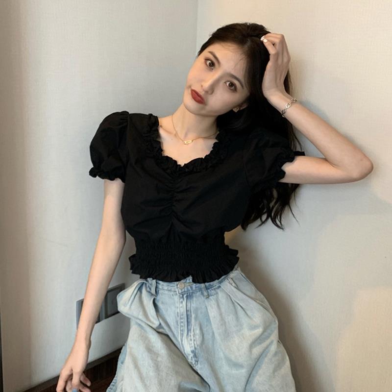泡泡袖短袖t恤女衣服2020年新款高腰短款半袖设计感露脐上衣小众