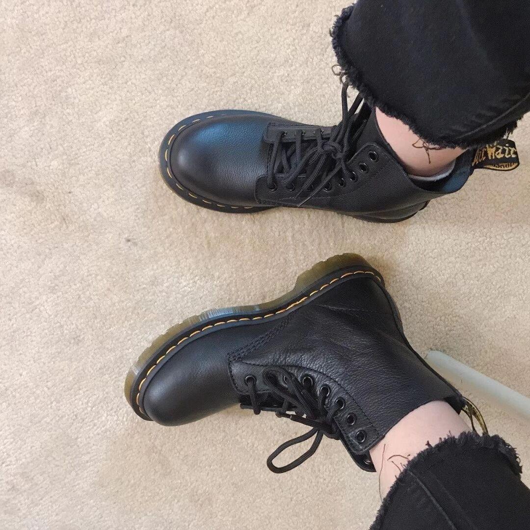 推荐8孔硬皮是最热销的但是我个人喜欢软皮上身效果没有任何区别 只是皮质的区别舒适度 1.荔枝皮 2.软皮 3.硬皮 全套包装盒 最高版 内外里全部头层牛皮 牛津原底巨舒服 超级显腿直 : 买正常码会大一个手指 脚瘦的人可以买小一码