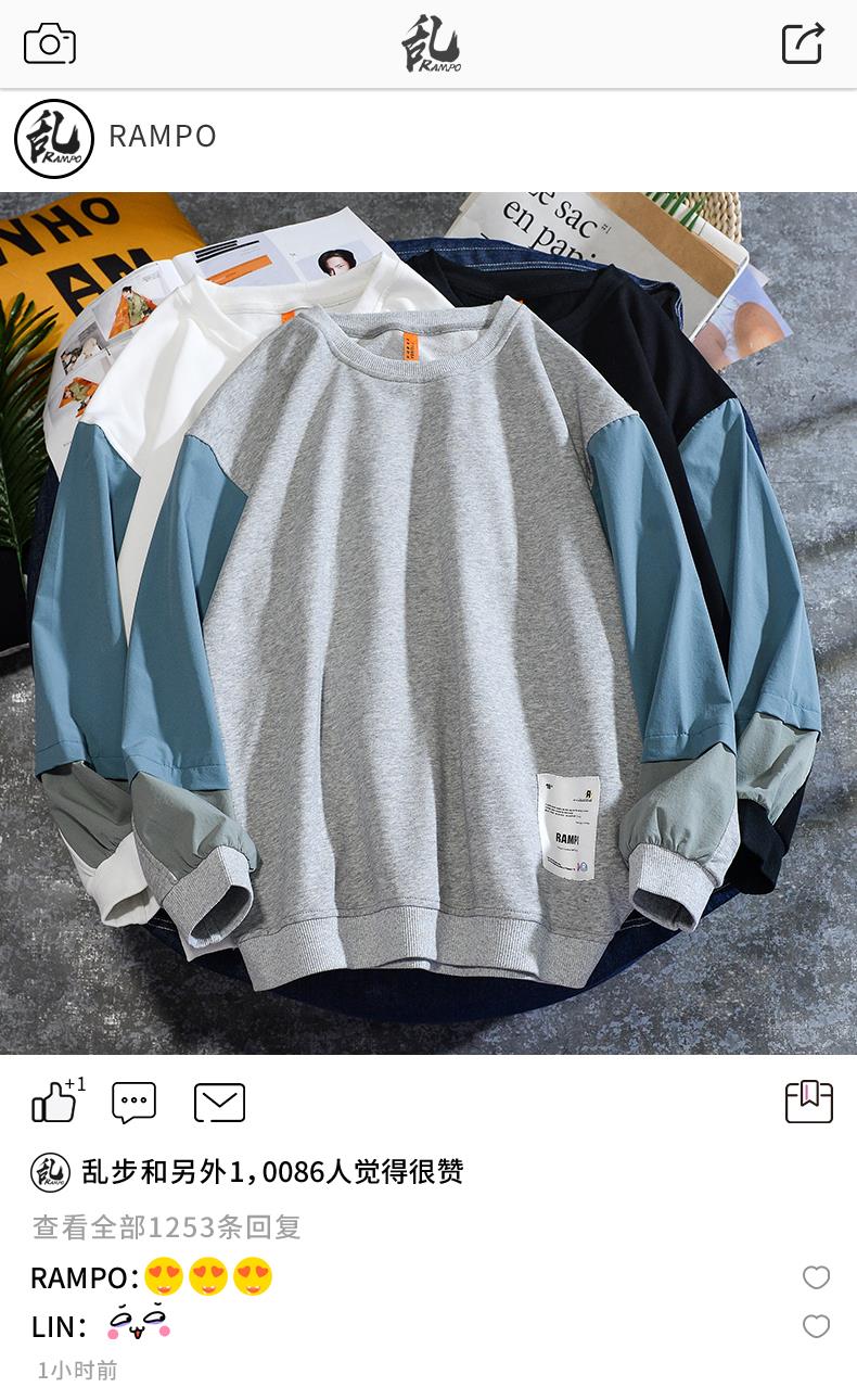 服饰箱包、运动户外 > 卫衣 > 2020新款长袖t恤男韩版潮流宽松打底衫薄款卫衣ins秋季情侣上衣服 宽松版型,上身舒适有范