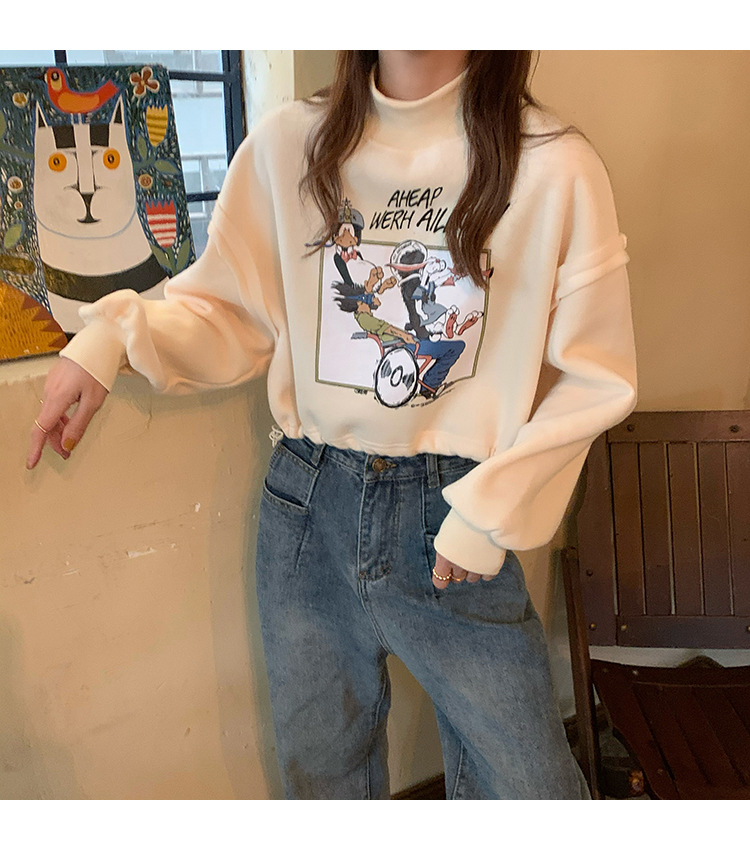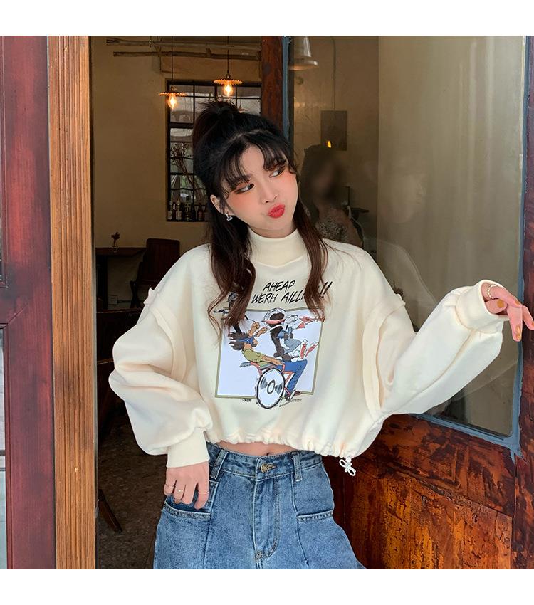 服饰箱包、运动户外 > 卫衣 > 小众设计感短款加绒卫衣女加厚秋冬新款宽松韩版学生套头高腰上衣