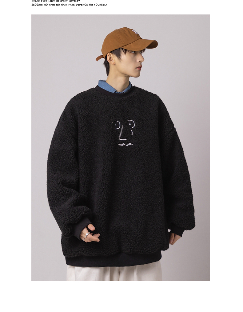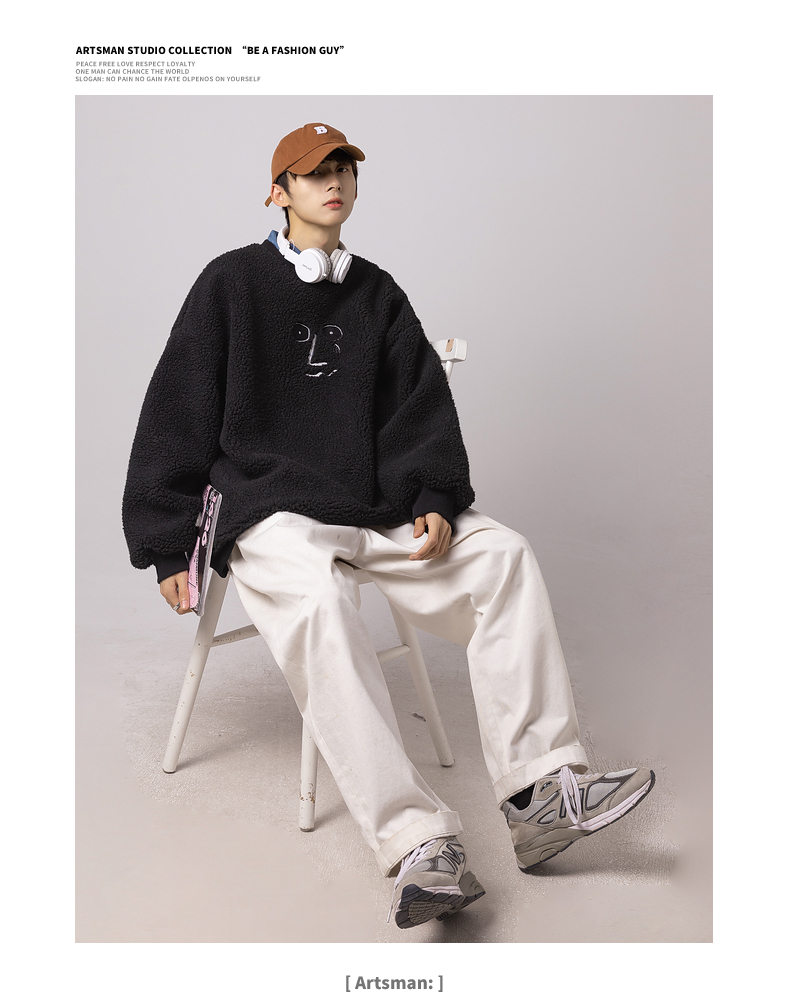 服饰箱包、运动户外 > 上装 > ARTSMAN 印花宽松圆领毛衣男情侣款毛线衣秋冬加绒加厚百搭针织衫