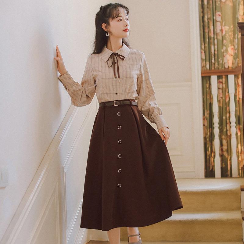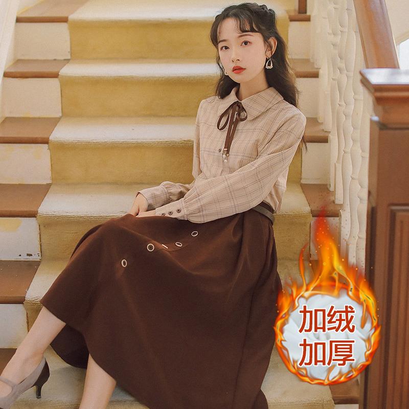 秋冬2020年新款气质女神范淑女风衬衫套装裙两件套轻熟风连衣裙女