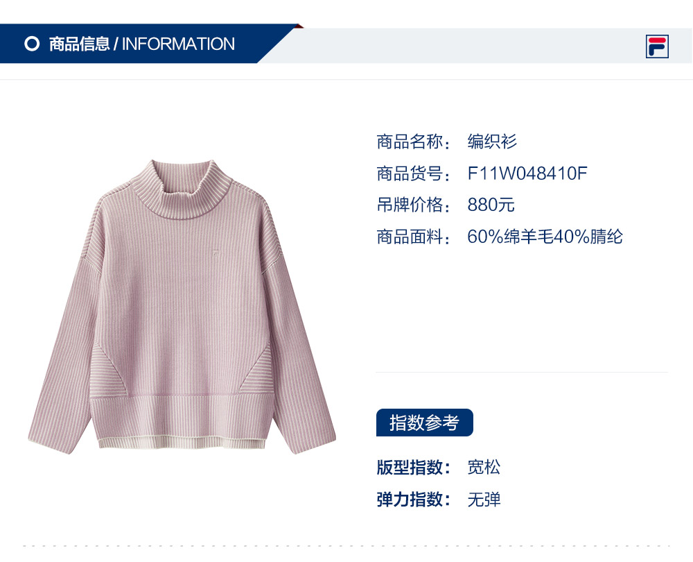 服饰箱包、运动户外 > 上装 > FILA 斐乐官方女士编织衫2020秋冬新款高领羊毛衫休闲运动毛衣