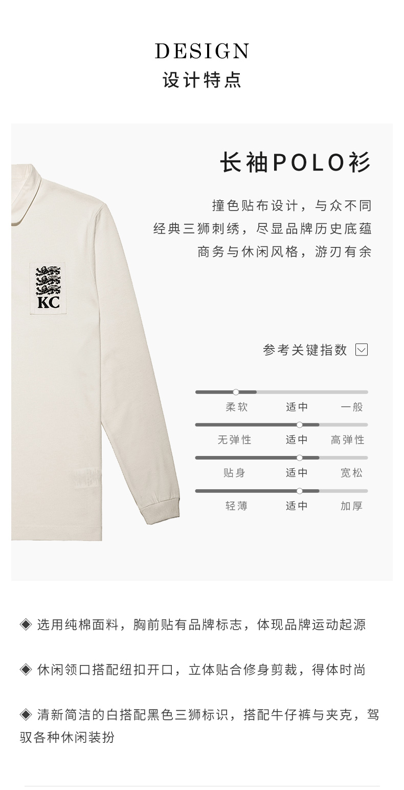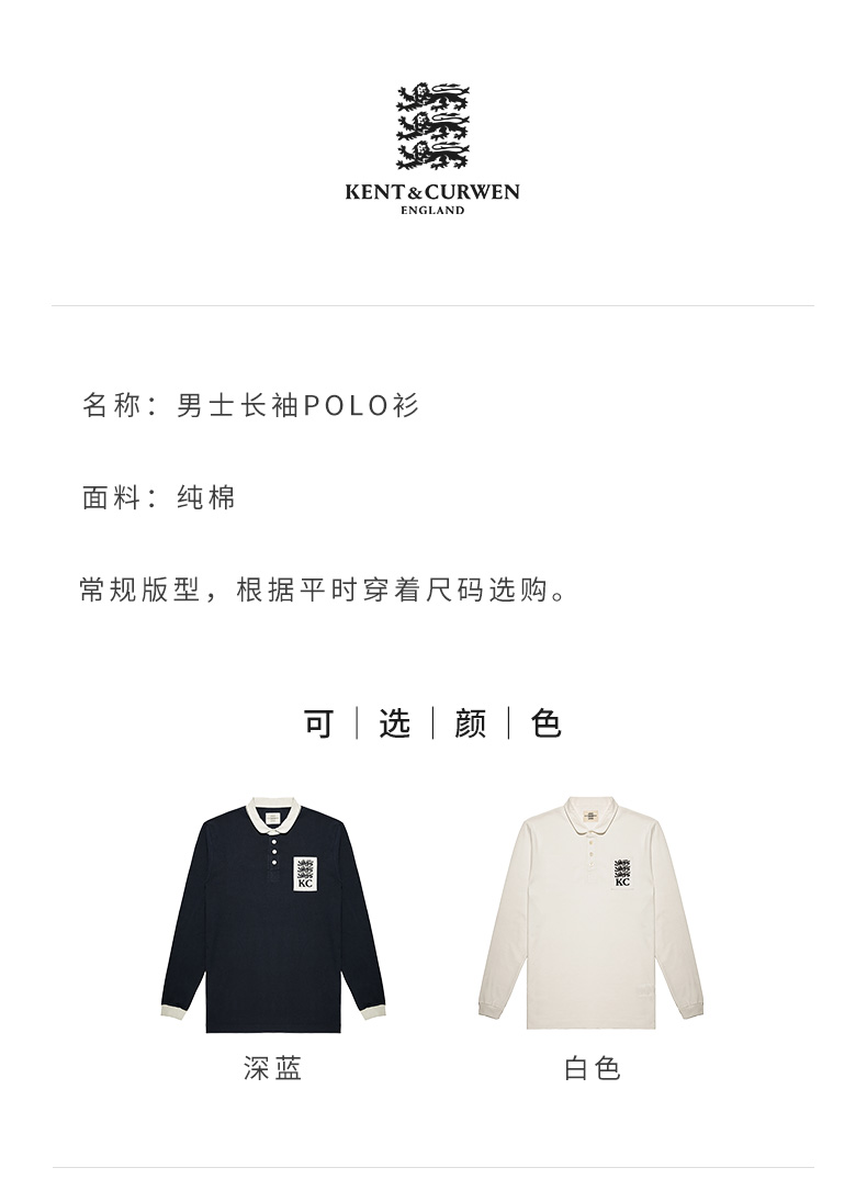 服饰箱包、运动户外 > 上装 > KENT&CURWEN/肯迪文秋冬系列棉质三狮长袖Polo衫男K38I7ER031