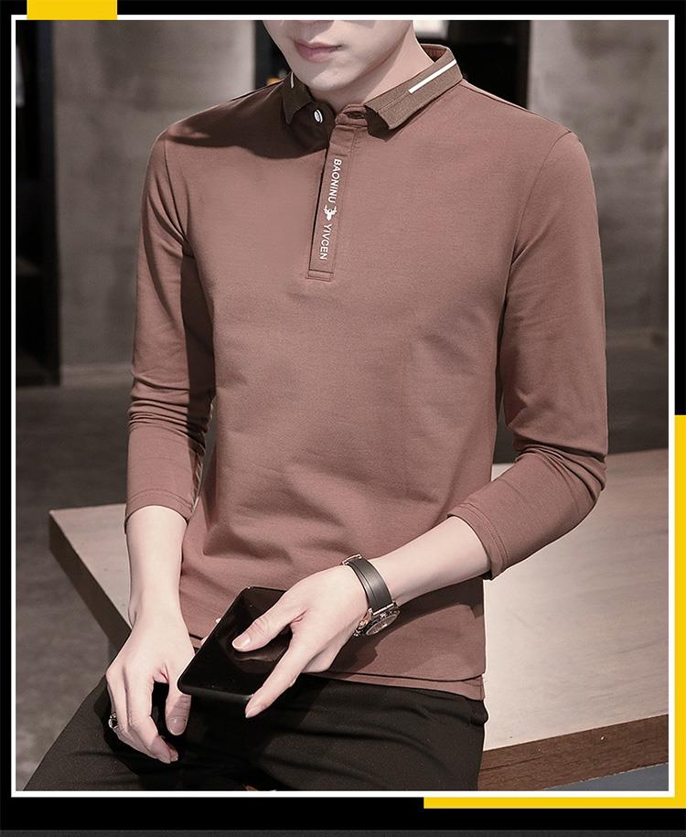 商品名称:杨妮2020秋装新款简约纯色翻领青年绅士潮流男长袖上衣秋衣衫潮牌XCD-1068-239 深灰色 M