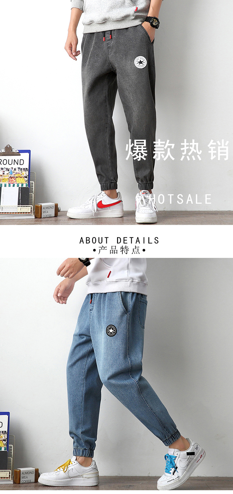 服饰箱包、运动户外 > 下装 > PPGE夏季男士裤子大码牛仔裤男宽松潮流潮牌束脚裤男胖子小脚裤男