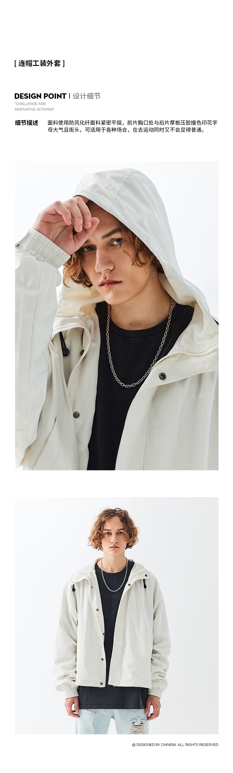 服饰箱包、运动户外 > 卫衣 > CHINISM 2020AW 秋季新款连帽夹克外套男潮宽松背后印花简约休闲