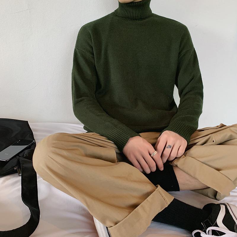 服饰箱包、运动户外 > 上装 > 秋冬纯色高领毛衣男宽松港风针织衫韩版潮流个性打底衫慵懒风线衣