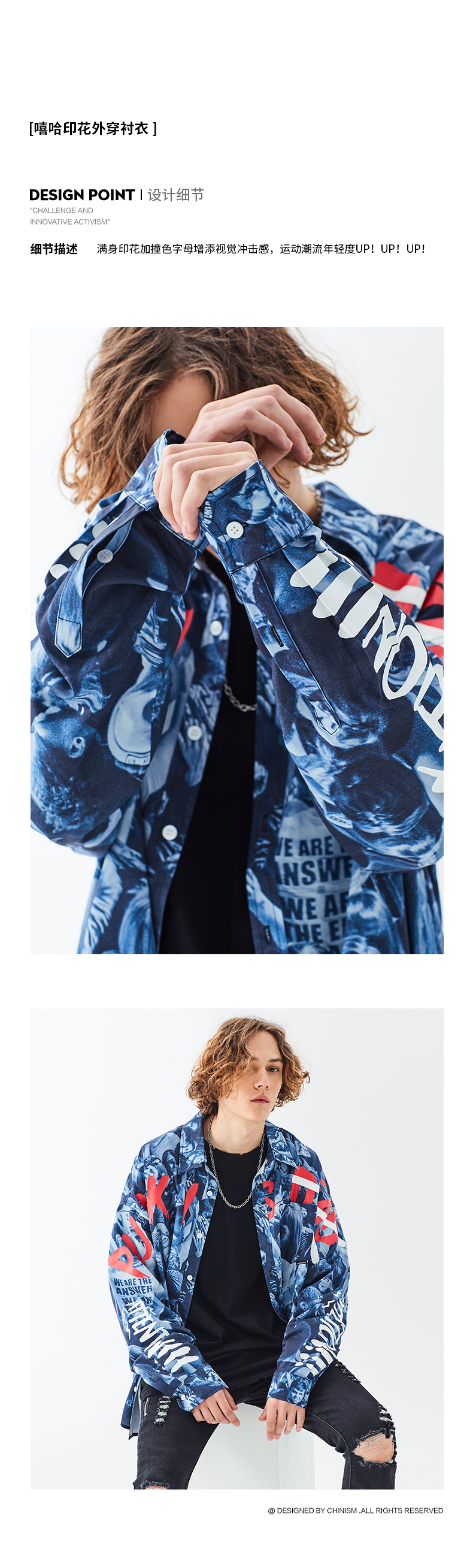 服饰箱包、运动户外 > 卫衣 > CHINISM 2020AW 秋季新款印花衬衫男国潮街头嘻哈宽松男士外穿潮