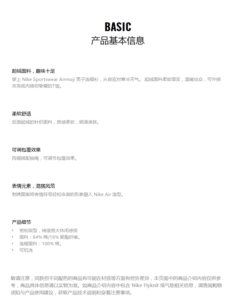 服饰箱包、运动户外 > 卫衣 > Nike耐克官方NIKE SPORTSWEAR AIRMOJI 男子连帽衫卫衣新款CU4259