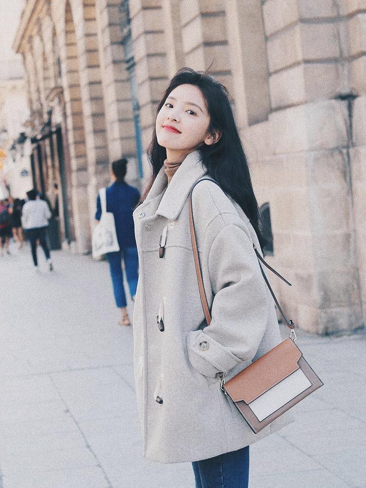 2018流行大衣女韩版牛角扣毛呢子2018秋冬季新款学生森系加厚外套