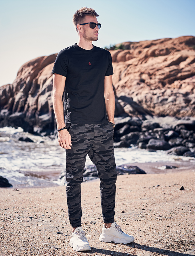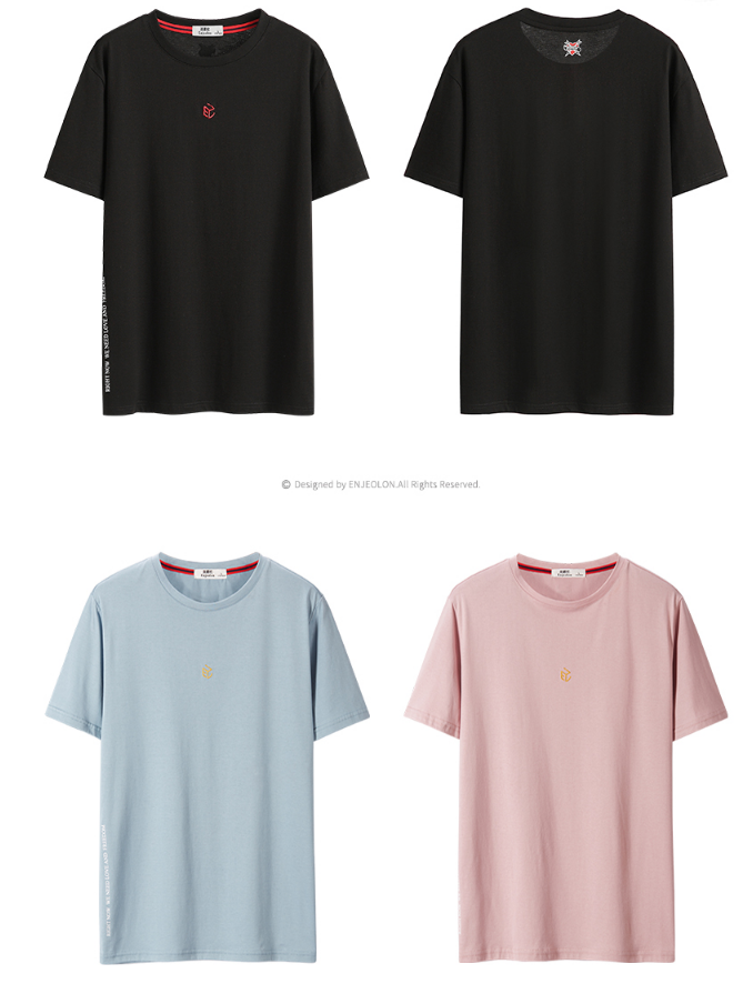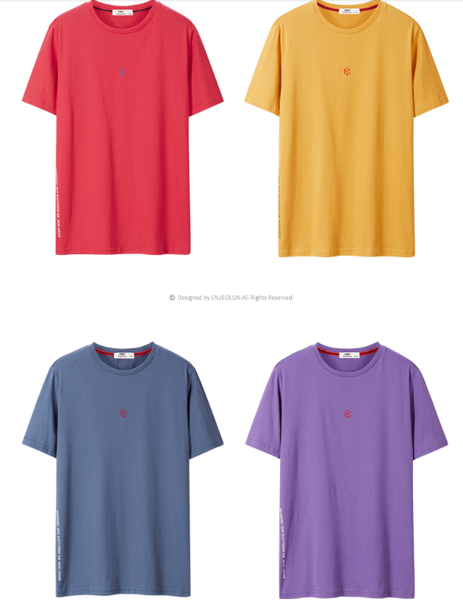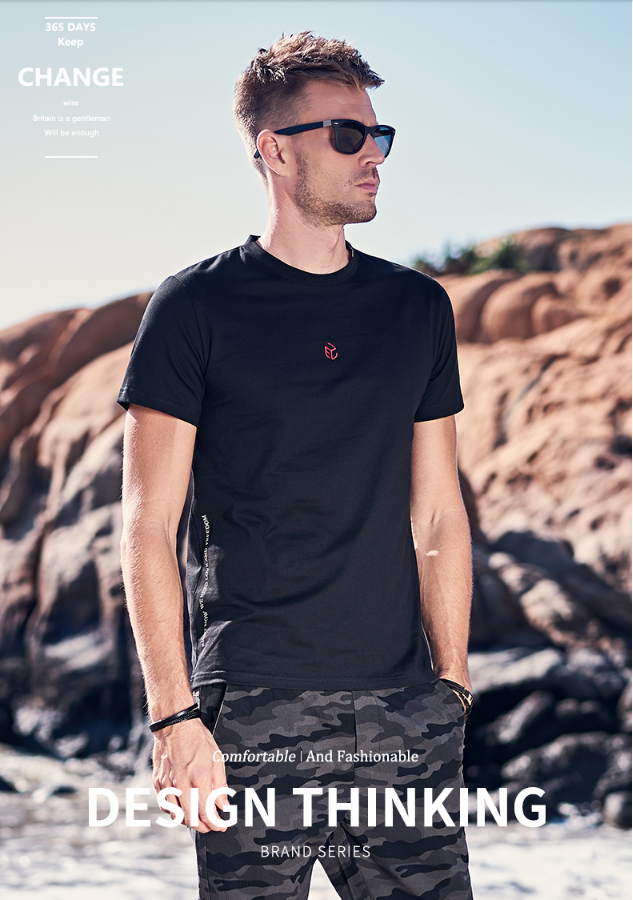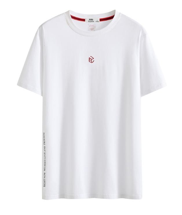 100%棉 2019夏季新品 男士短袖T恤 欧美简约潮流刺绣上衣体恤纯棉