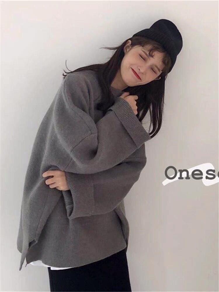 纯色毛衣 温柔风学生套头宽松慵懒风针织衫潮