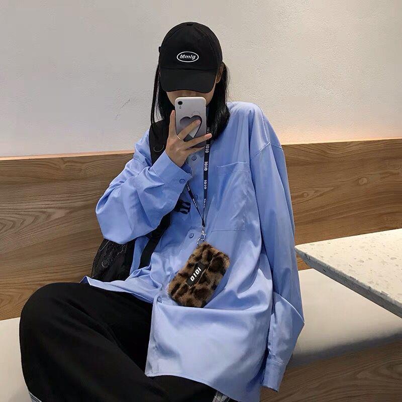 蓝色衬衣女夏季新款韩版复古宽松bf白色休闲长袖衬衫上衣 好看真的超级好看 买就对了