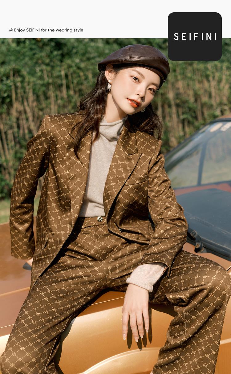 服饰箱包、运动户外 > 上装 > 复古老花西装外套女2021新款秋冬气质高级感小西装长裤套装