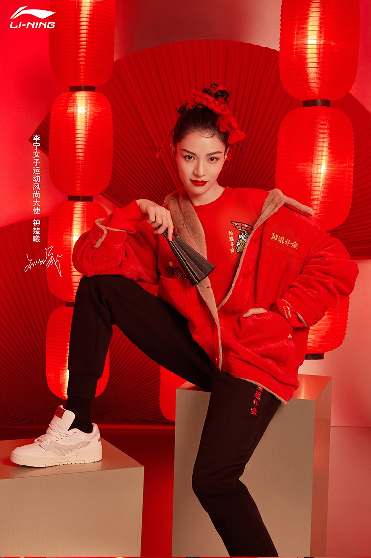 服饰箱包、运动户外 > 卫衣 > 钟楚曦同款李宁卫衣女2022新品运动潮流系列套头衫日进斗金虎年宽松套头上衣AWDS158 朱砂红-2 M
