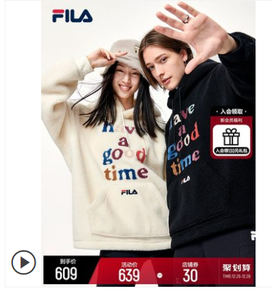 服饰箱包、运动户外 > 卫衣 > FILA x have a good time斐乐仿羊羔绒加绒情侣卫衣2021冬季新品