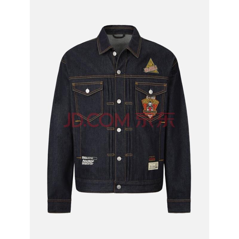 商品名称:EVISU 2022年秋冬新款 男士佛头军事风格贴布牛仔外套2EAADM2DJ230LFCT 牛仔蓝 L