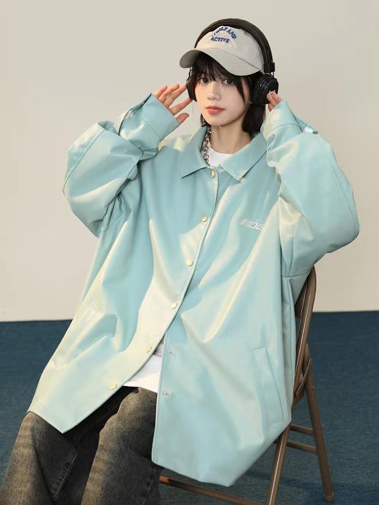 GUSTEL新款春装韩系高级设计感小众超好看皮衣外套女