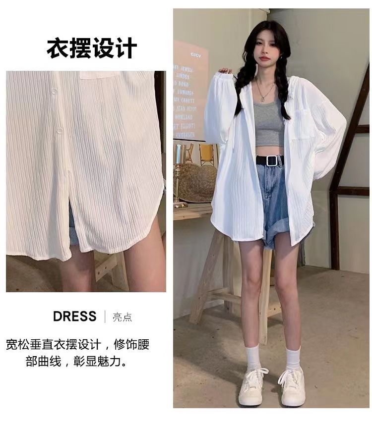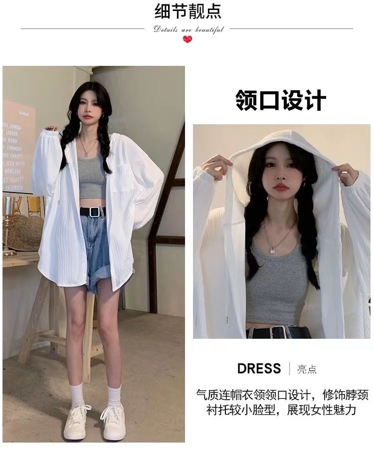 2023春夏新款薄款冰丝开衫防晒衣女宽松连帽空调外套