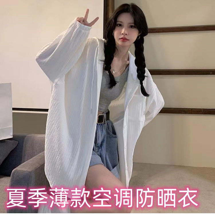 服饰箱包、运动户外 > 卫衣 > 2023春夏新款薄款冰丝开衫防晒衣女宽松连帽空调外套