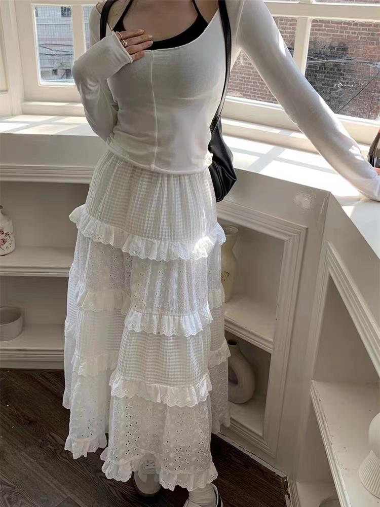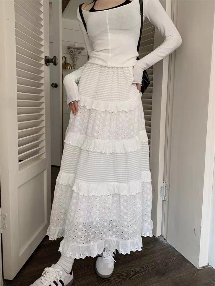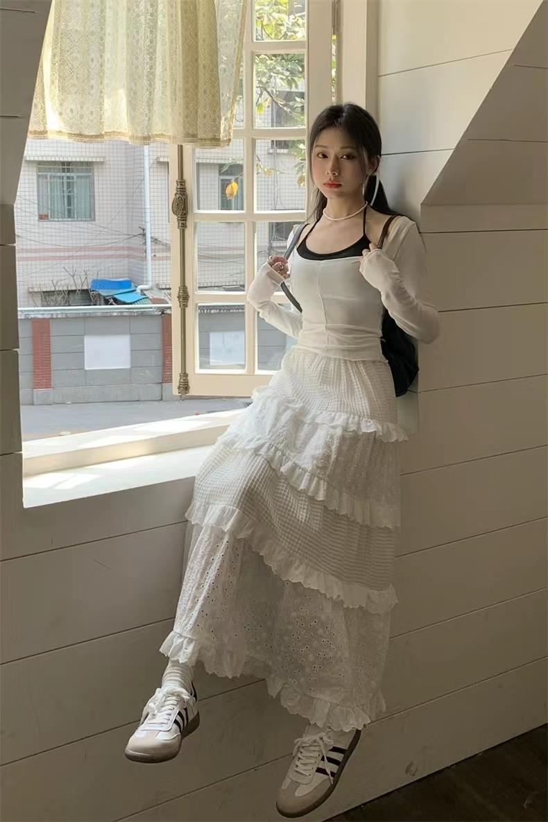 这条白色温柔风半身裙选用高品质的面料,非常适合夏季穿着。裙身设计合身修长,完美展现出您的曲线美。无论是搭配高跟鞋或是平底鞋,都能展现出独特的温柔风格。简约大方的设计,为您展现出优雅的气质。