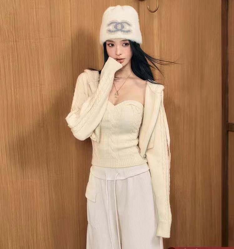 毛衣外套完美过渡深秋到初冬的温度差,慵懒宽松的版型融入了绞花元素和连帽设计,复古洋气又学院,内搭抹胸,助攻层次感穿搭,文艺氛围栖息于城市楼宇。