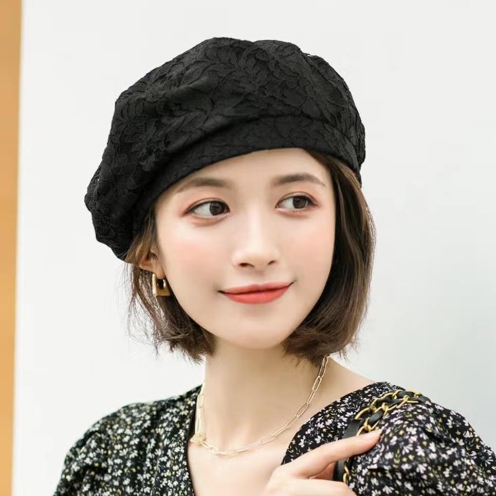 八角贝雷帽薄款蕾丝贝雷帽女夏季韩版时尚百搭蓓蕾帽优雅文艺春秋