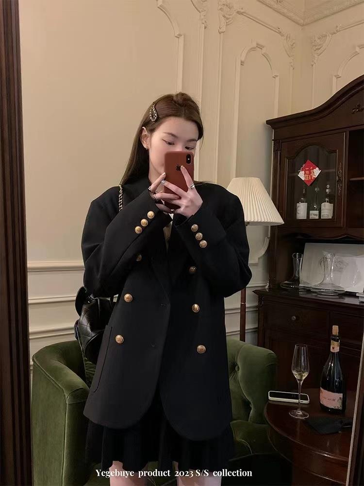 呈现挺阔显瘦的时髦廓形 显瘦遮肉满足日常通勤的需求优雅双排金扣设计 优雅别致Jing典又美观整版型通过人体工学多次更改 穿着活动更加舒适自如
