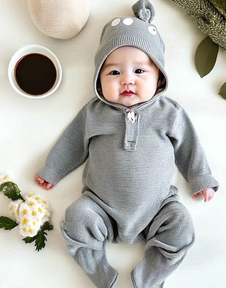这款新生婴儿套装由一套灰色棉质连体衣和配套的黑白波点帽子与袜子组成,专为迎接新生命的到来而设计。连体衣采用柔软的棉料制成,保证了宝宝的舒适度和透气性。独特的交叉绑带设计易于穿脱,同时又能保持温度。波点帽子和袜子则增添了时尚感,黑白相间的经典配色永不过时。这套套装不仅是实用的新生儿必备品,也是送给准父母的理想礼物,让他们感受到您的关爱与祝福。无论是自用还是送礼,都能体现出您的用心挑选。
