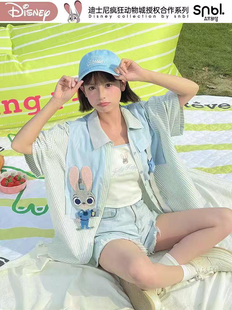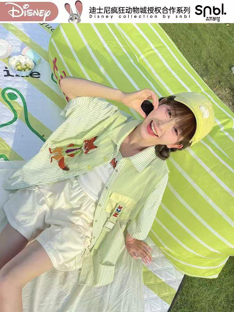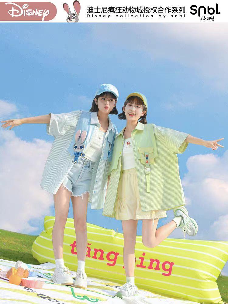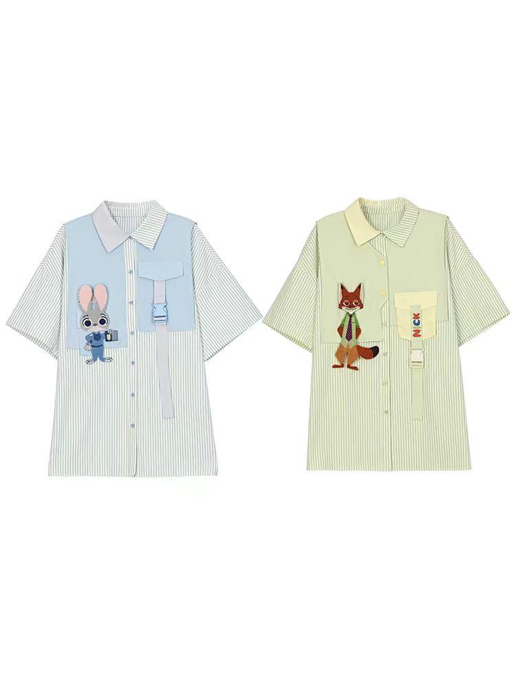 疯狂动物城联名森女部落原创男友风polo衫休闲衬衫外套拼接假两件