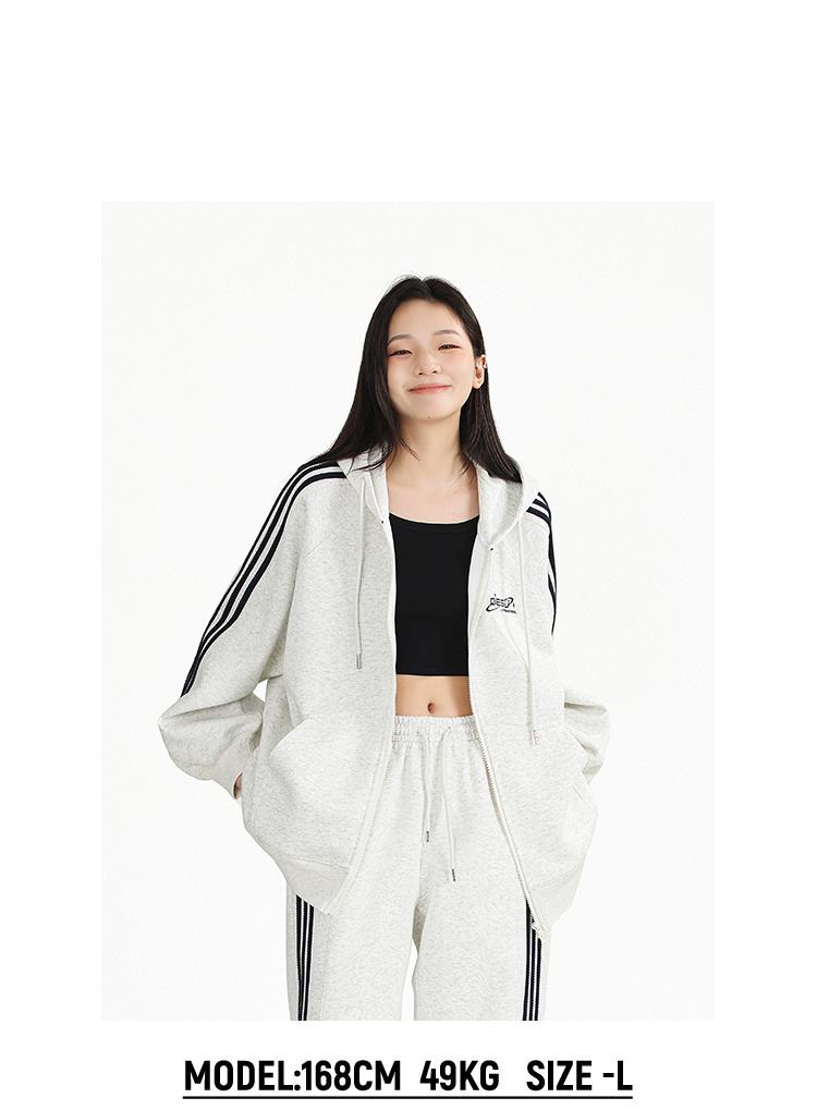 服饰箱包、运动户外 > 上装 > 美式复古三条杠开衫外套连帽加绒卫衣女休闲运动套装潮秋冬