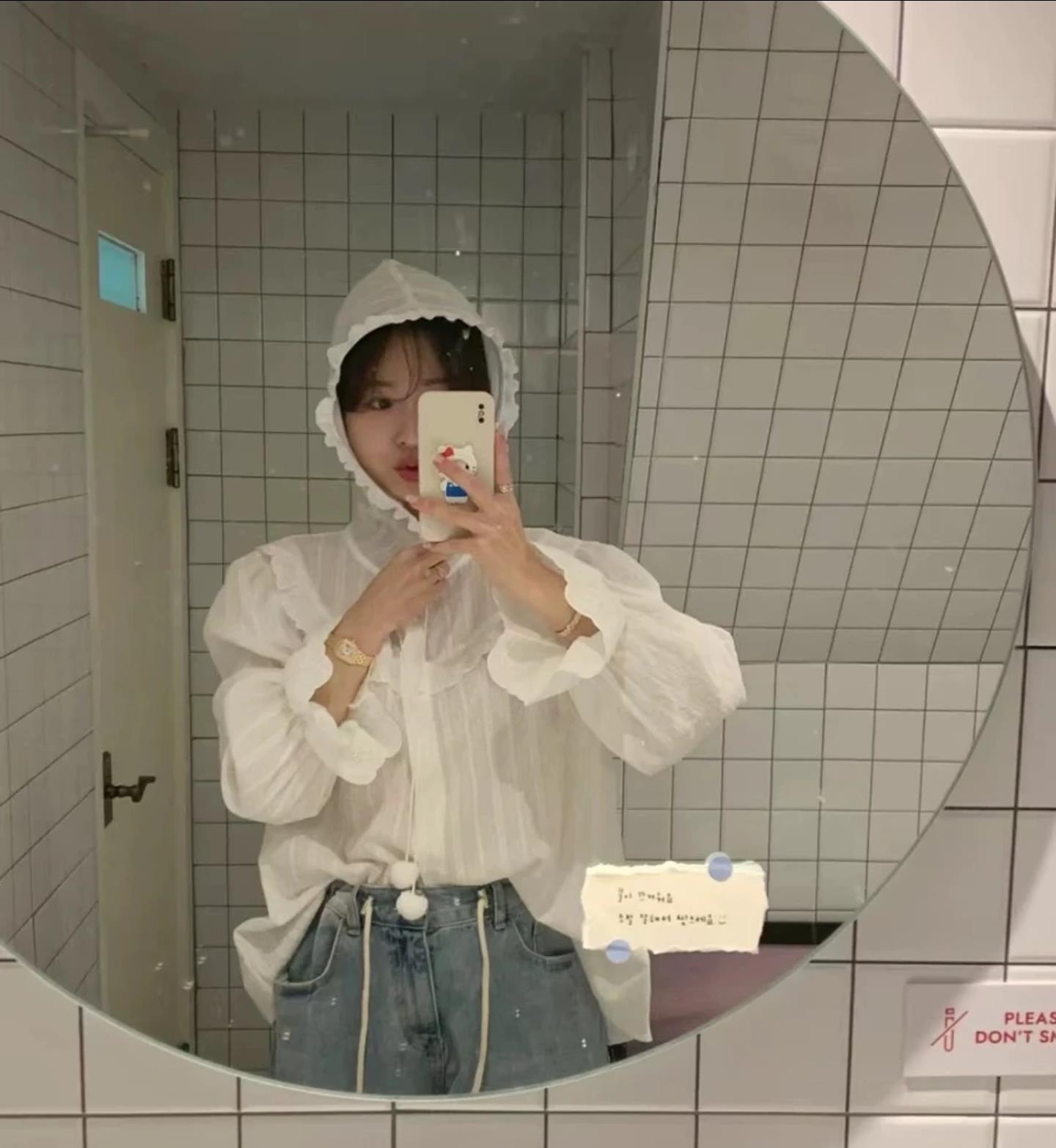 这款蕾丝连帽衬衫,采用纯净的白色为底色,领口的蕾丝花边如同精致的蕾丝项圈,为整体造型增添了一份浪漫与甜美。帽子的荷叶边设计,为整体造型增添了一份俏皮与灵动,让你轻松拿捏法式的浪漫风情。