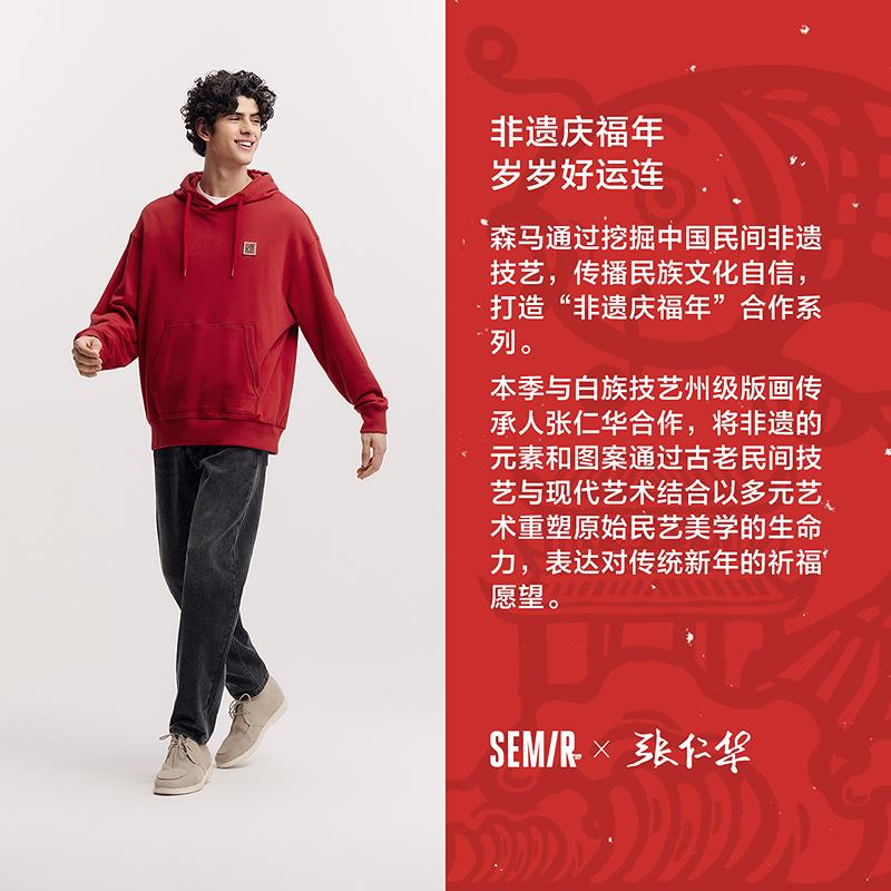 - 搜索关键字:森马非遗联名卫衣,白族甲马卫衣,国潮连帽卫衣