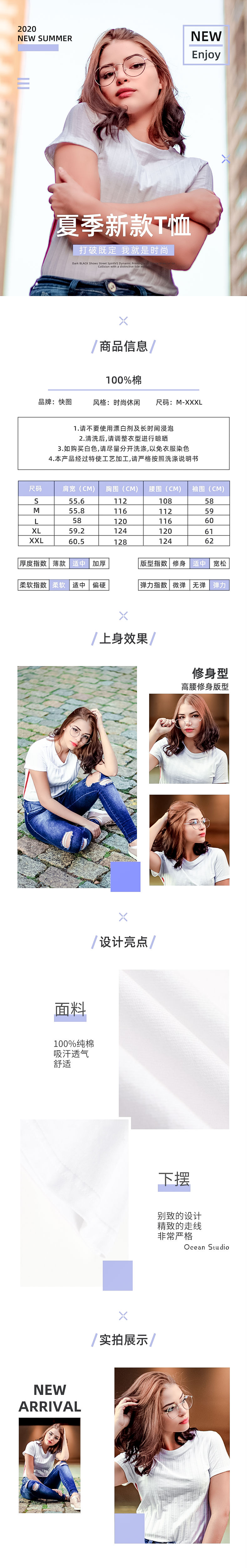 服饰箱包、运动户外 > 上装 > 夏季新款简约白色纯棉T恤